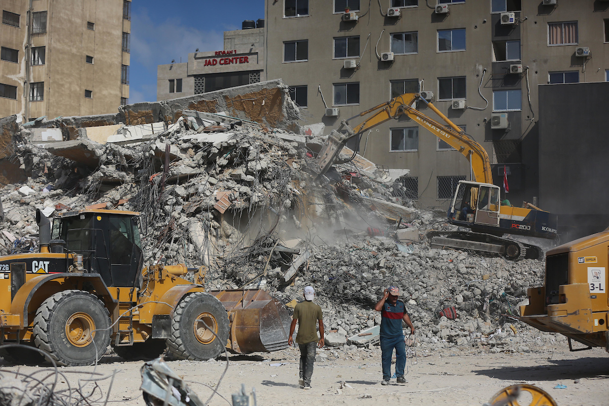 عملية إزالة الركام في برج الجلاء بغزة