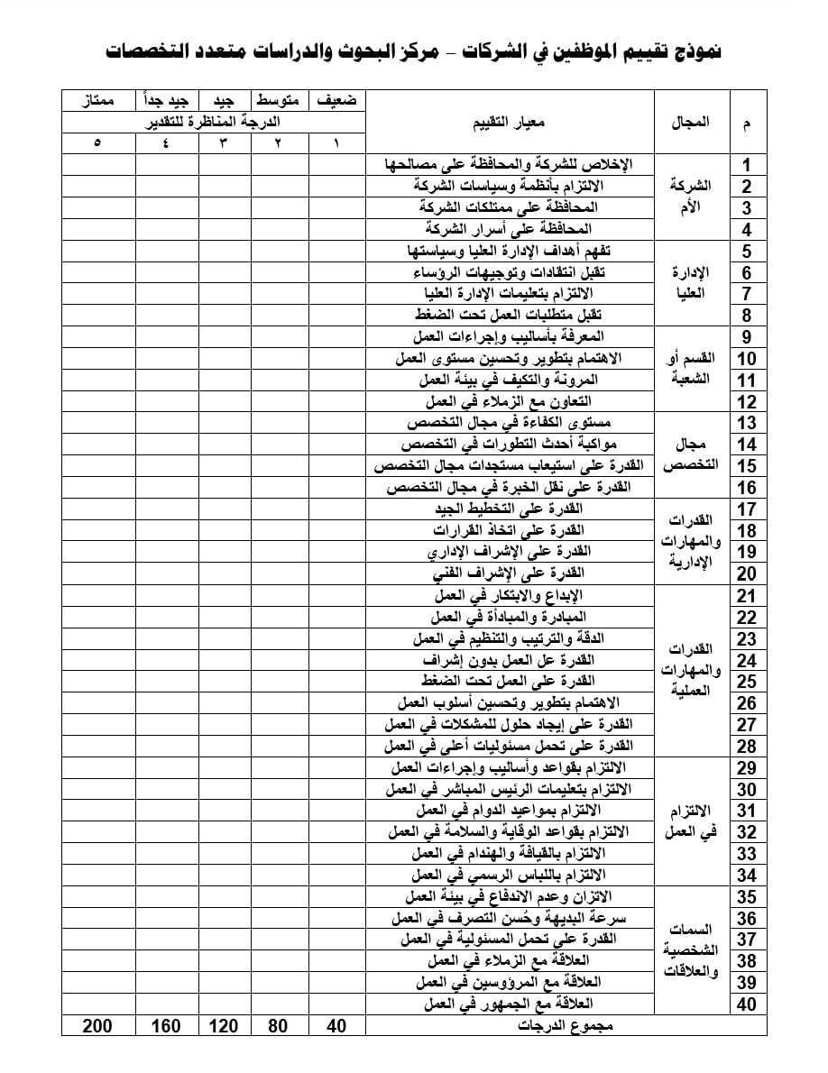 وتكون تقارير الأداء، وفقا لمجموعة من المعايير موضوعية منها السلوك، والالتزام، والجودة، والتميز، والإبداع، والإنجاز، والقدرة على تحمل المسؤولية.