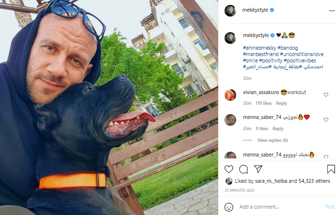 شارك الفنان أحمد مكي جمهوره بصورة له، ظهر فيها بصحبة كلب خاص به، لنشر الطاقة الإيجابية بين جمهوره، ونالت هذه الصورة على إعجاب الكثير من جمهور.