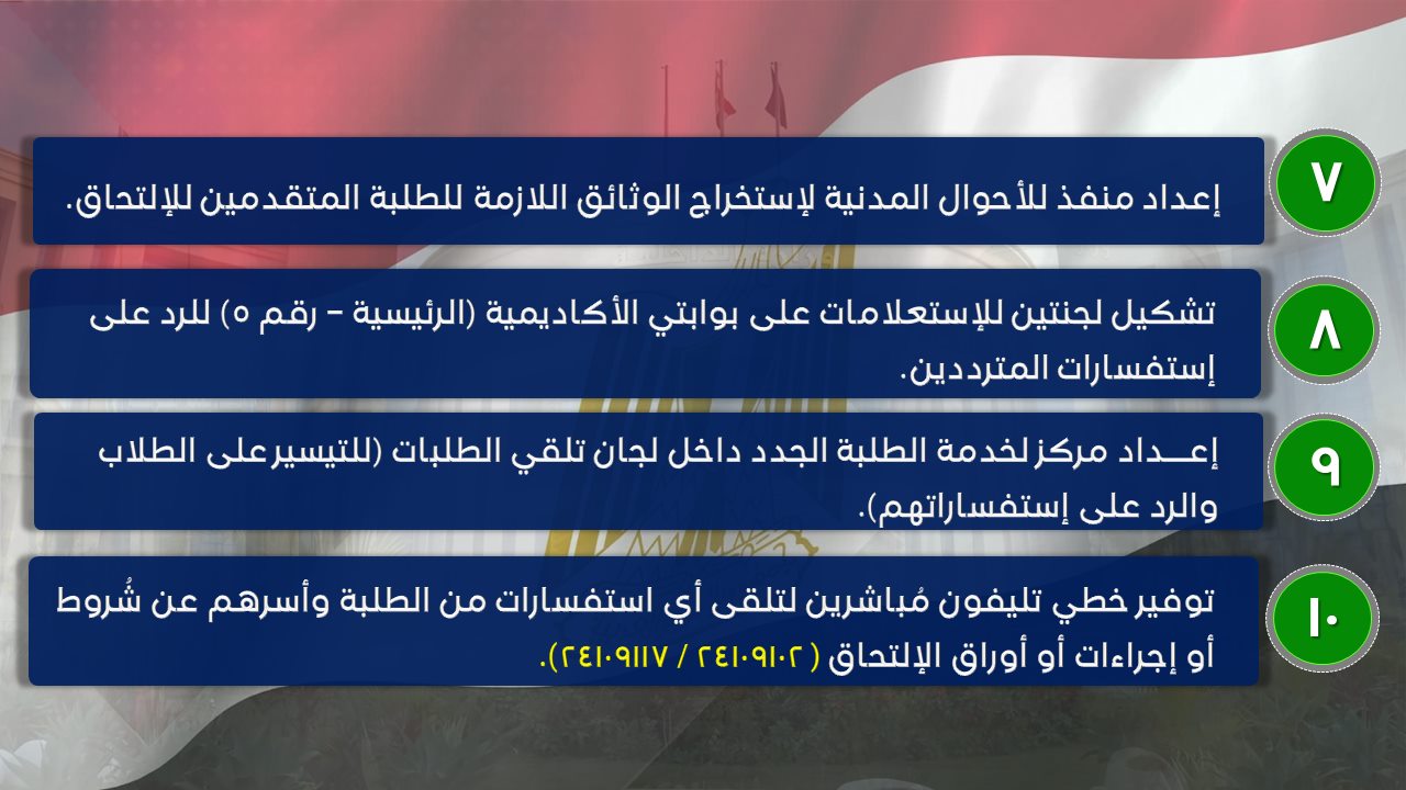 وبين أنه تم طباعة كتيب يحتوي على جميع الخطوات لكيفية التقديم وإعداد منافذ لاستخراج صحف الحالة الجنائية والطوابع والتصوير الفوتوغرافي وتشكيل لجان للاستعلامات وتوفير خطوط هاتفية لتلقي كافة الاستفسارات وهي ٢٤١٠٩١٠٢، و٢٤١٠٩١١٧.