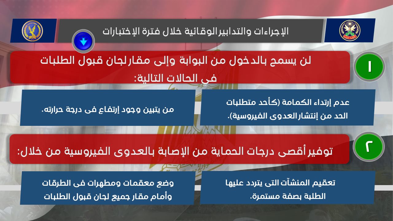 وأكد أنه لا بد من ارتداء الكمامة ولن يسمح بالدخول من البوابة وإلى مقار لجان قبول الطلبات من لا يرتدي الكمامة، مشددا على مراعاة التباعد بين الطلبة وتعقيم المنشآت التي يتردد عليها الطلبة ووضع معقمات ومطهرات في الطرقات.