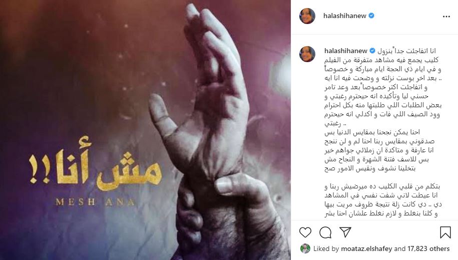 وتابعت حلا شيحة : “إحنا يمكن نجحنا بمقايس الدنيا، بس صدقوني بمقايس ربنا إحنا لم ولن ننجح، أنا عارفة ومتأكدة إن زملائي جُواهم خير، بس للأسف فتنة الشهرة والنجاح مش بتخلينا نشوف ونقيس الأمور صح.. بتكلم من قلبي، الكليب ده ميرضيش ربنا، وأنا عيطت لأني شفت نفسي في المشاهد دي، دي كانت زلة نتيجة ظروف مريت بيها، وكلنا بنغلط ولازم نغلط، علشان إحنا بشر بس المصيبة إننا بنغفل وبننسى”.