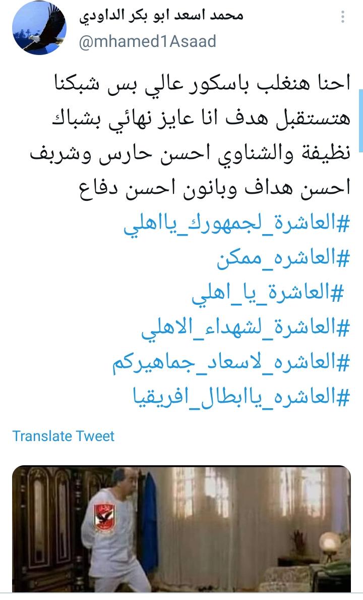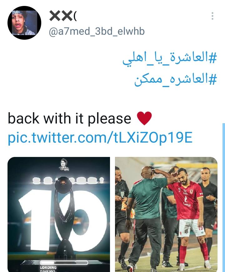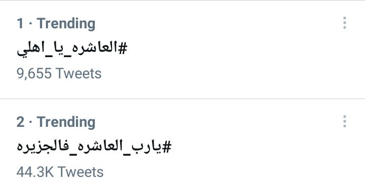تصدر هاشتاج " العاشرة يا أهلي" موقع التغريدات القصيرة " تويتر" قبل ساعات من خوض الشياطين الحمر موقعة النهائي التي تجمع الفريق بكايزر تشيفز.