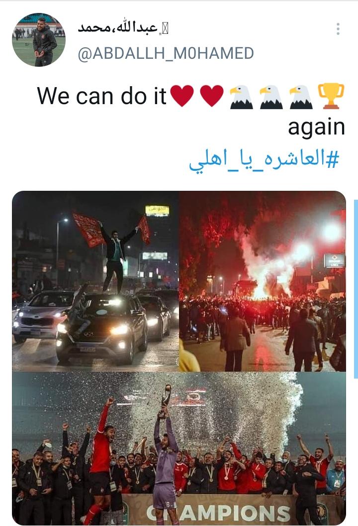 جمهور القلعة الحمراء يساند فريقه بهاشتاج "العاشرة يا أهلي" قبل موقعة نهائي إفريقيا