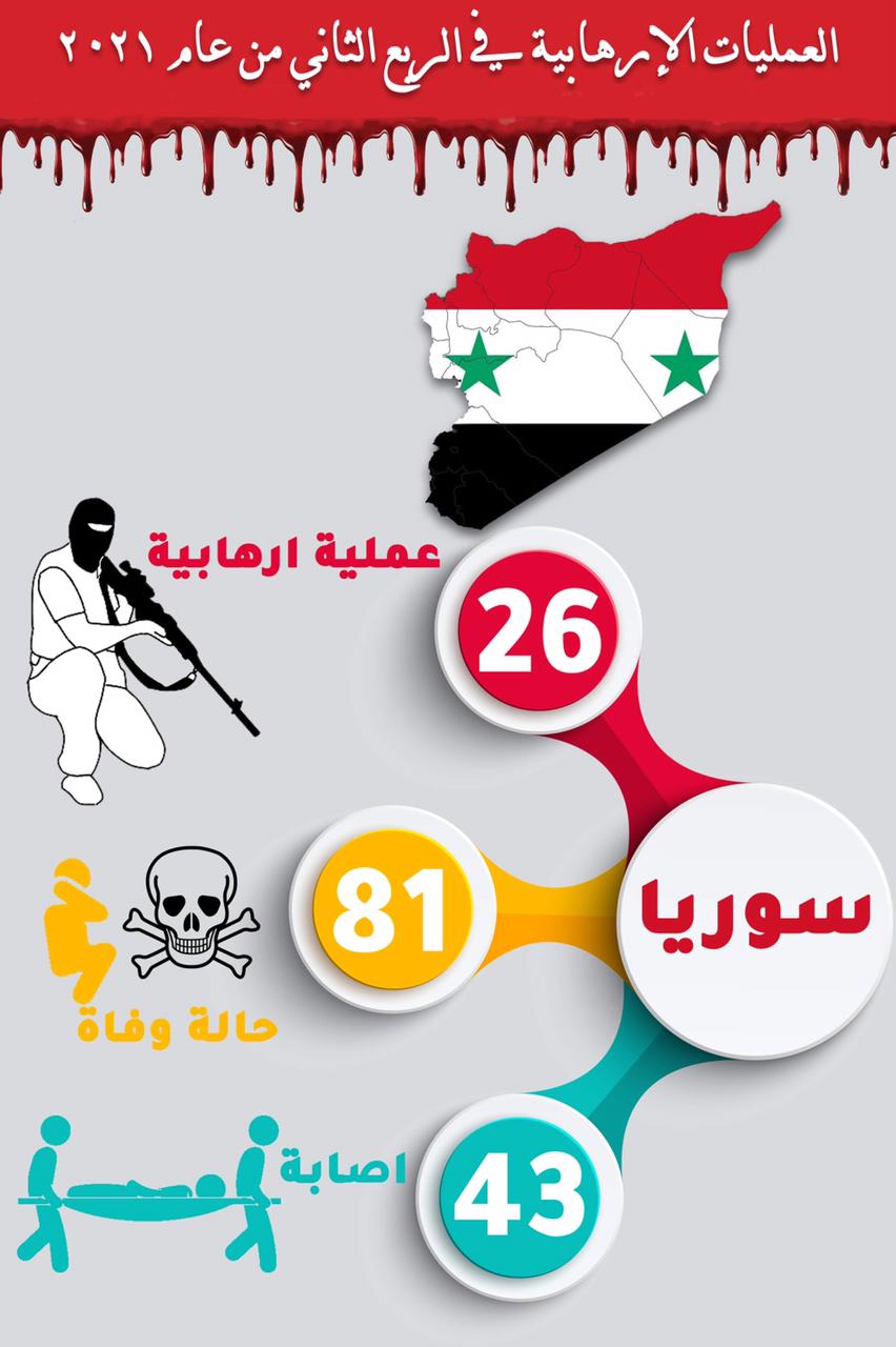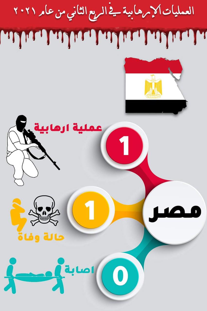 تناول التقرير الذي يحمل عنوان "مؤشر الإرهاب في المنطقة العربية"، تطور النشاط الإرهابي في المنطقة العربية خلال الربع الثاني من عام 2021 (إبريل – يونيو 2021)، حيث أوضح التقرير ارتفاع معدلات العمليات الإرهابية في المنطقة العربية خلال الربع الثاني من هذا العام، مقارنة بالربع الأول من نفس العام حيث رصد التقرير ما يربو علي 212 عملية إرهابية، مقارنة بنحو 169 عملية إرهابية في الثلاثة شهور الأولي من العام الجاري.