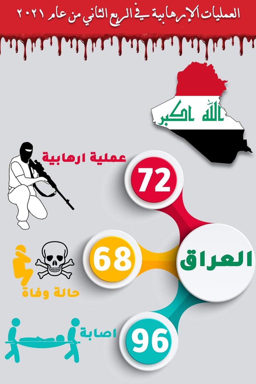 فيما نٌسبت نحو 61 عملية إرهابية لمجهولون وفصائل موالية للميليشيات الإيرانية في العراق.