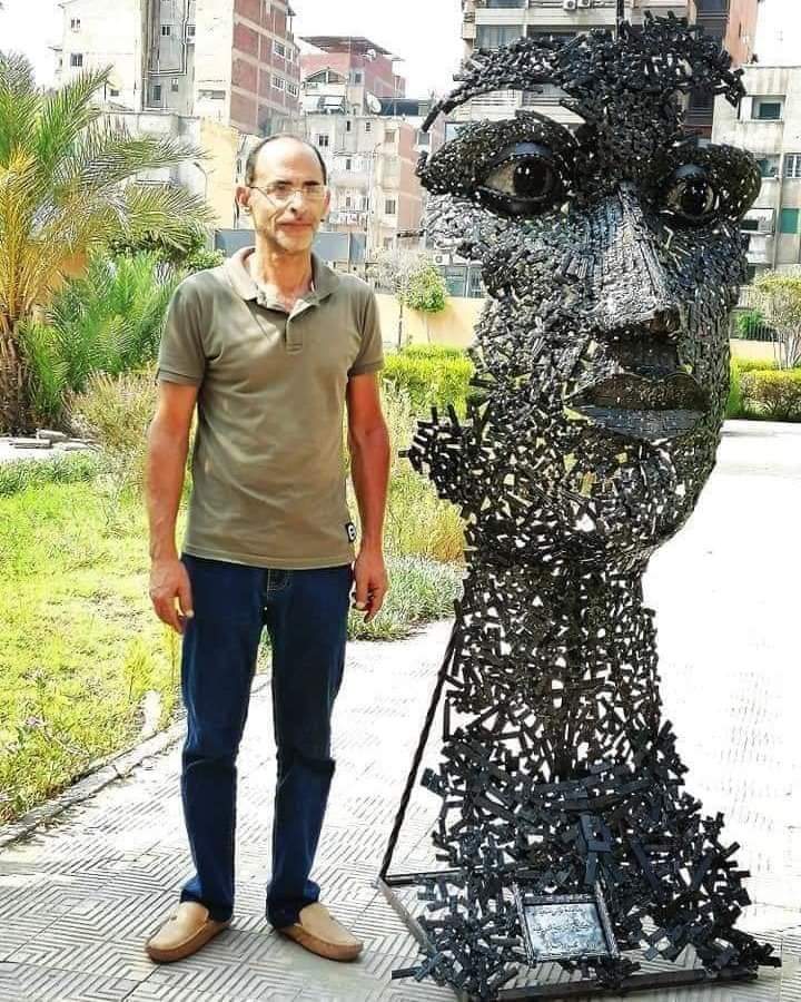 وأشار "الفنان"، إلى أن العمل اعتمد علي إعادة تدوير الحديد "الخردة"، حيث قام باستخدام أكثر من 3000 قطعة حديد، وتمكن من خلالها من تجسيد هذا العمل الذي لقى استحسان المواطنين، وتم الإشادة به من كافة فئات المجتمع.