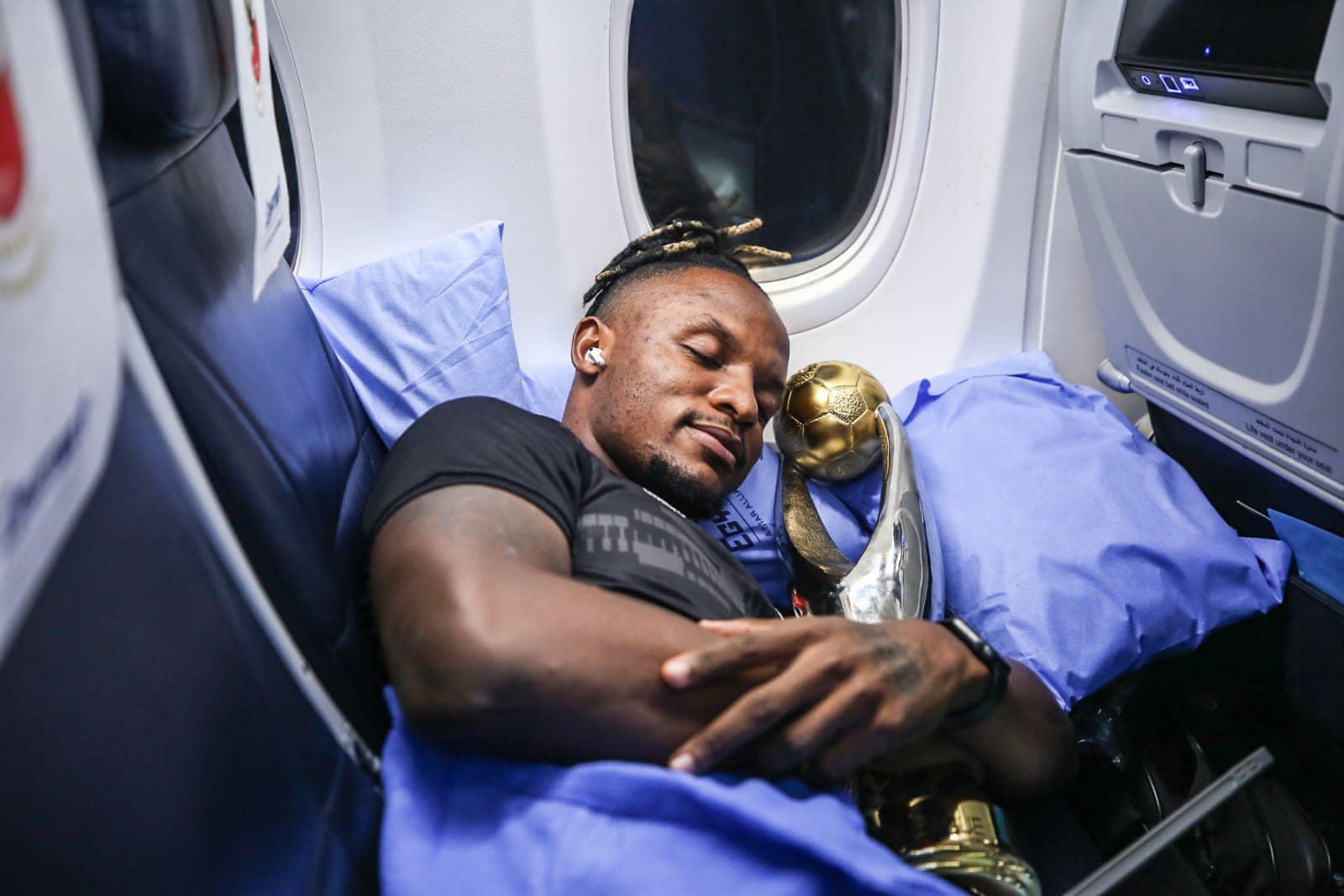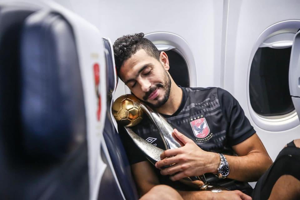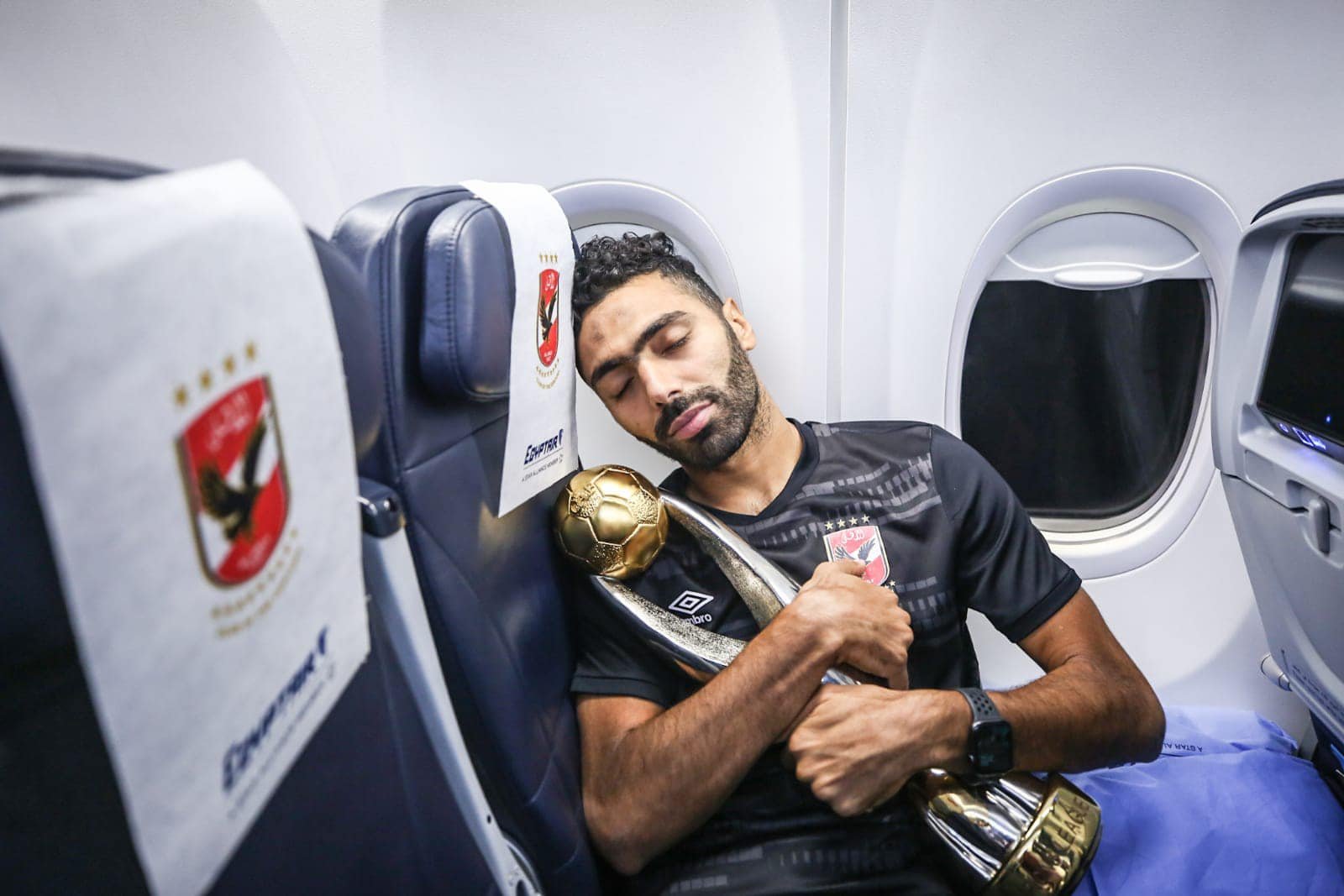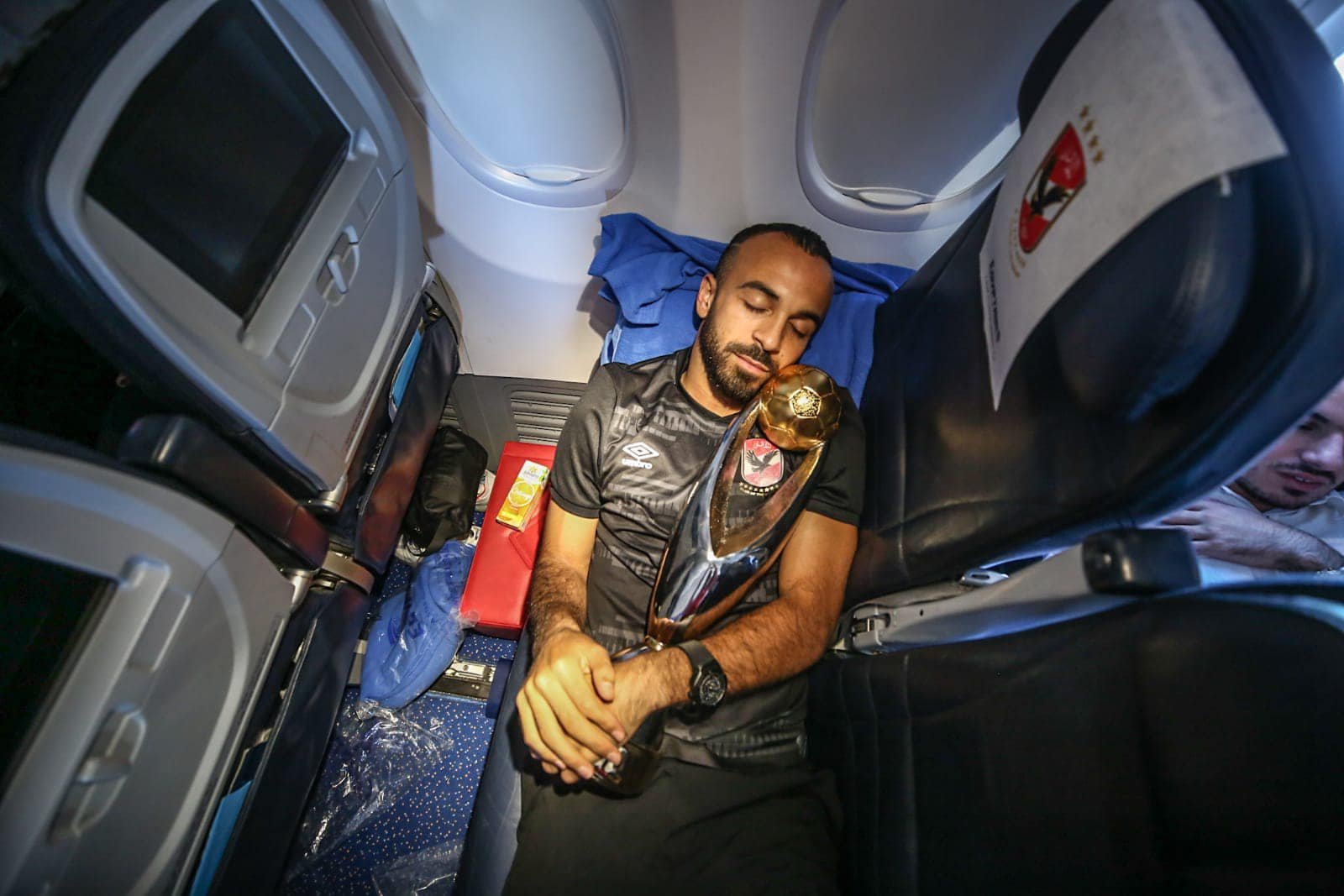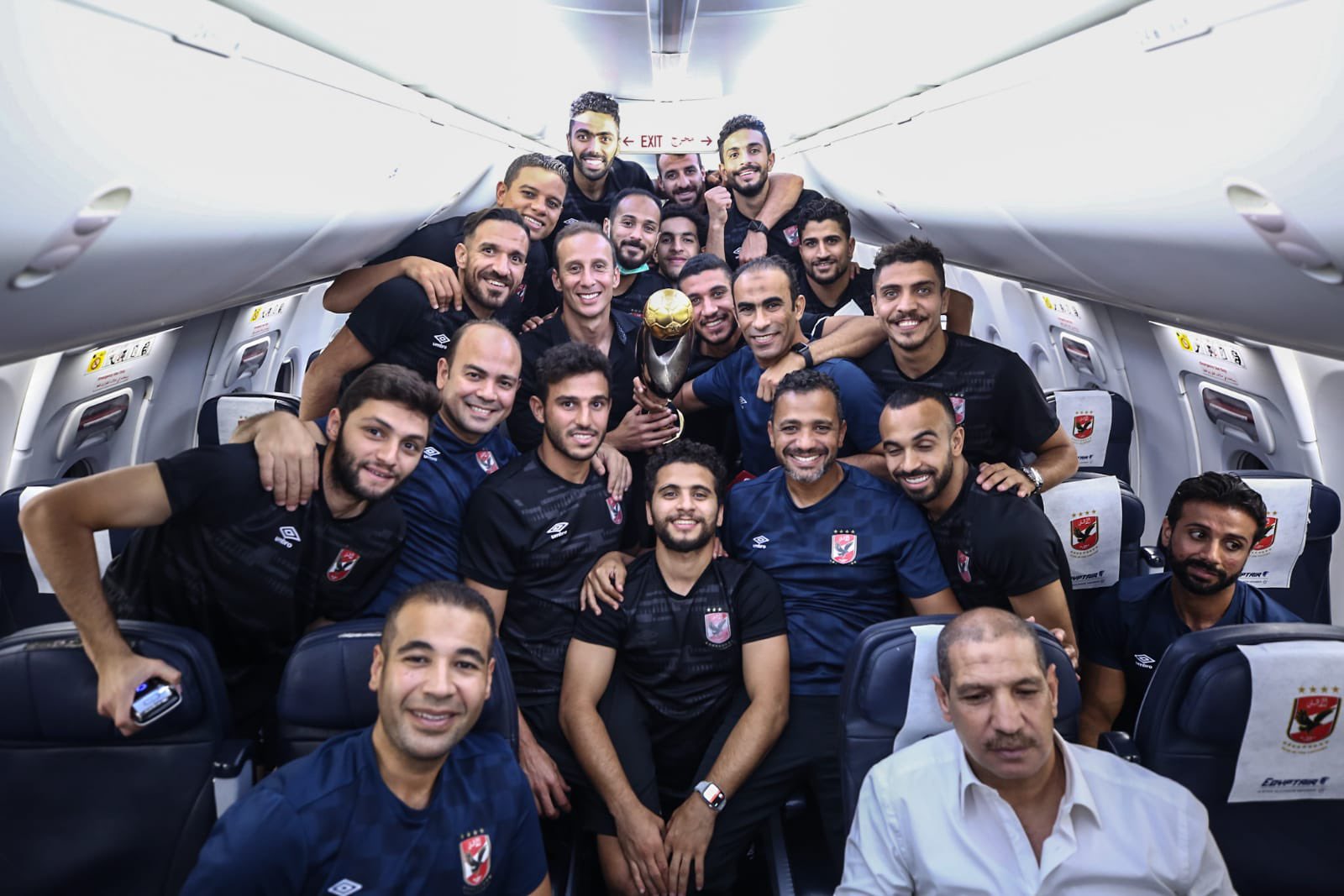 حرص لاعبو النادي الأهلي، على الاحتفال بالفوز ببطولة دوري أبطال إفريقيا للعام الثاني على التوالي، على متن طائرة العودة إلى القاهرة.