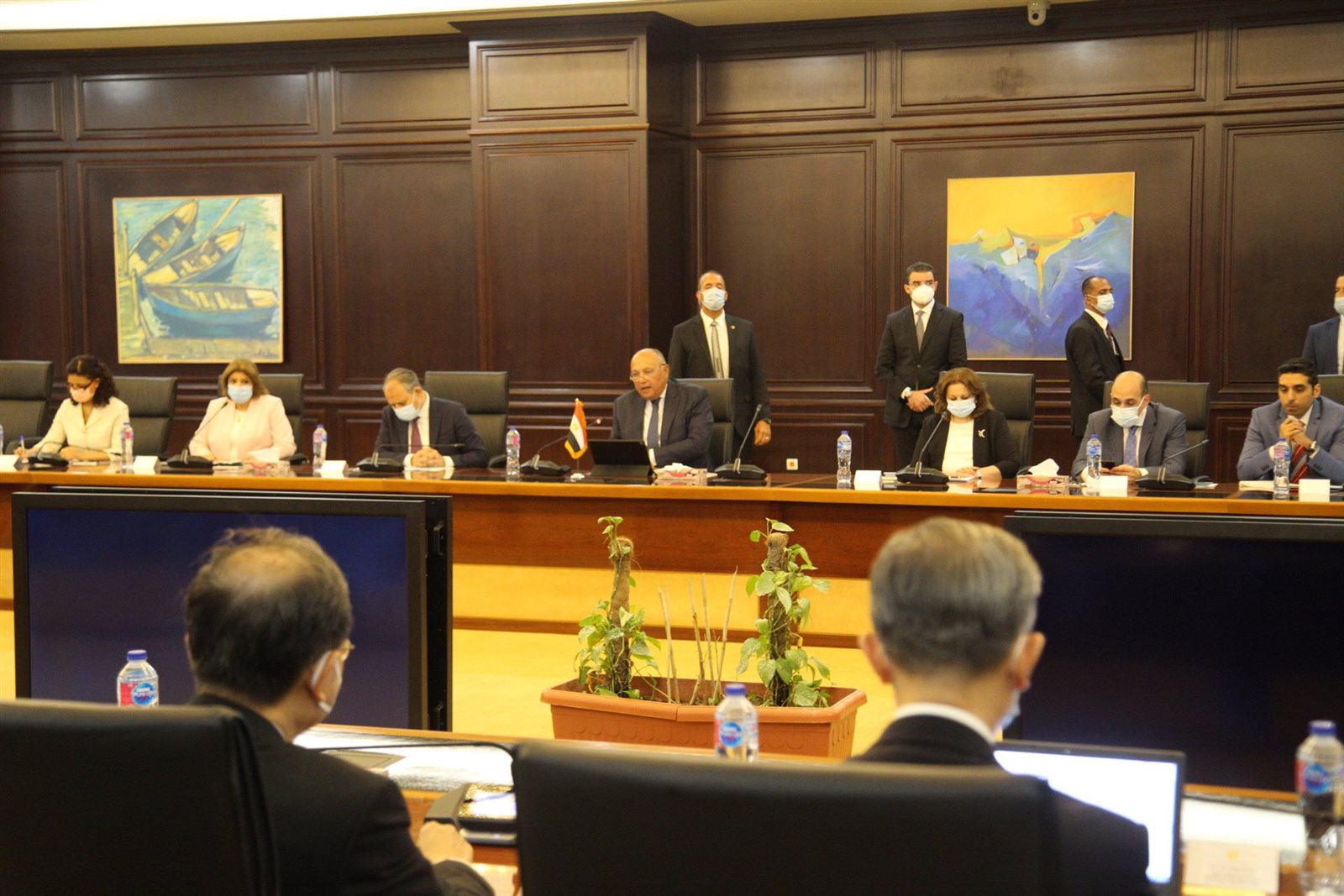 شكري يستقبل نظيره الصيني في مقر مجلس الوزراء بمدينة العلمين