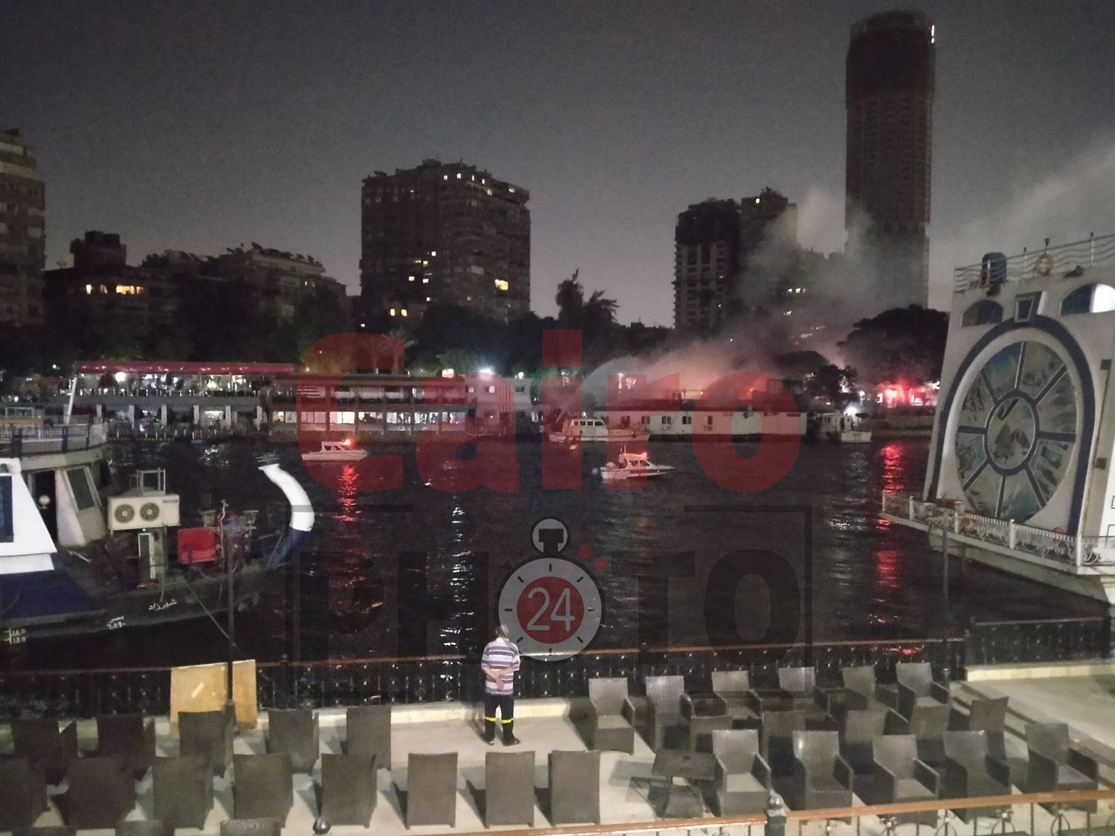 وكان قد تلقى مسؤول غرفة عمليات الحماية المدنية بالقاهرة، إشارة من شرطة النجدة بتصاعد أدخنة من مركب بمنطقة العجوزة.