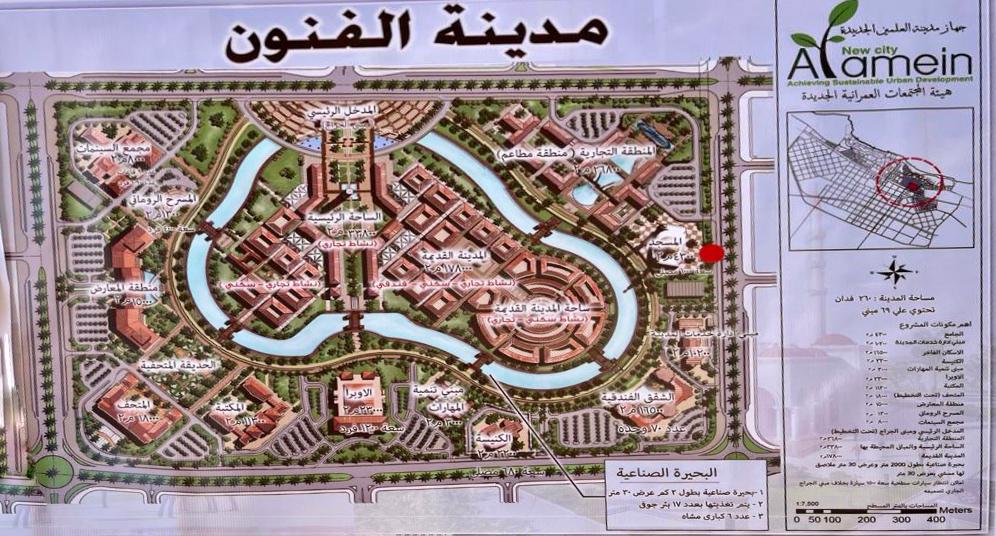 استمع الرئيس عبدالفتاح السيسي، إلى شرح مفصل من الدكتور عاصم الجزار، وزير الإسكان، عن سير العمل ومعدلات التنفيذ لمنشآت ومرافق مدينة الفنون، التي تعتبر متنفس ترفيهي ثقافي لمدينة العلمين، والساحل الشمالي، على مساحة 260 فدان، تضم مجموعة من الأنشطة الفنية والثقافية المتنوعة من مجمعات لدور عرض السينما ومطاعم ومسرح روماني مكشوف للحفلات والعروض الموسيقية مجهز بأحدث تقنيات الصوت، ومبنى للأوبرا، إضافة إلى قاعات تدريب وأرض للمعارض، كما تضم أيضا مبنى تنمية المهارات البدوية الموجودة في المنطقة للحفاظ على الطابع التراثي لمدينة العلمين، ذلك بالإضافة إلى مكتبة مركزية ودور عبادة.