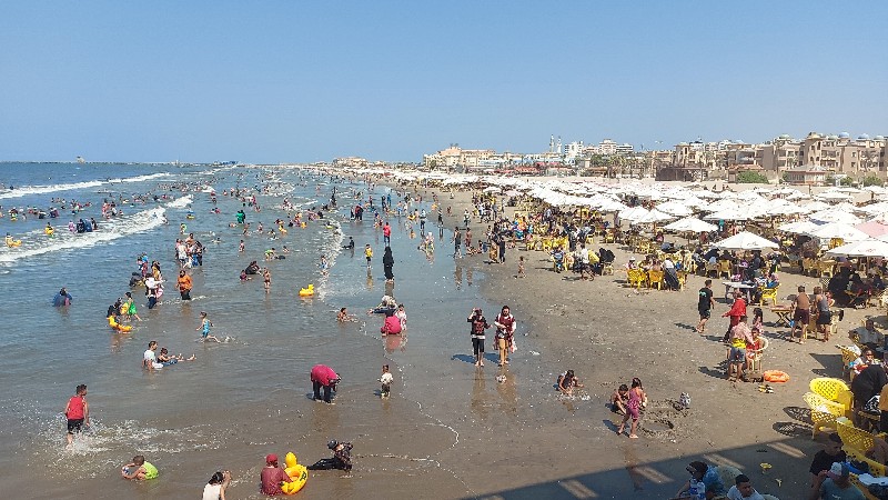 شهد شاطئ محافظة بورسعيد، اليوم الخميس، إقبالًا كثيفًا من المصطافين في ثالث أيام عيد الأضحي المبارك.