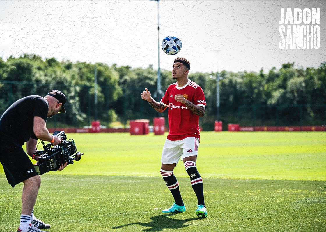 وقال نادي مانشستر يونايتد عبر حسابه الرسمي على موقع التواصل الاجتماعي "تويتر" بفيديو تقديمي ترحيبًا باللاعب: "هذا منزله.. إنه المكان الذي ينتمي إليه، جادون سانشو في مانشستر يونايتد".