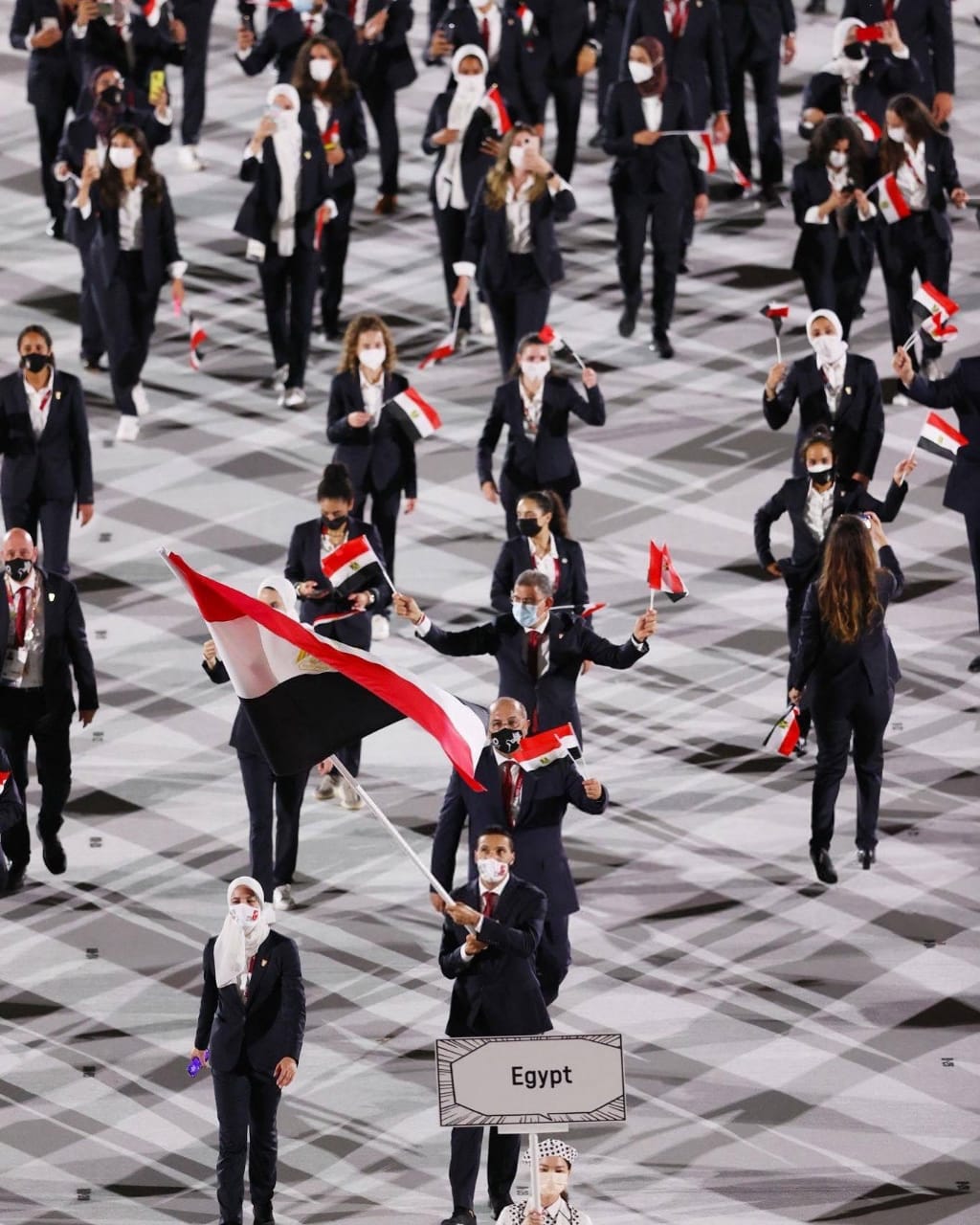 ورفع علاء أبو القاسم وهداية ملاك علم مصر، أثناء دخول طابور عرض أولمبياد طوكيو رفقة البعثة، لتصبح هداية ملاك بذلك أول امرأة مصرية تحمل العلم في الأولمبياد.