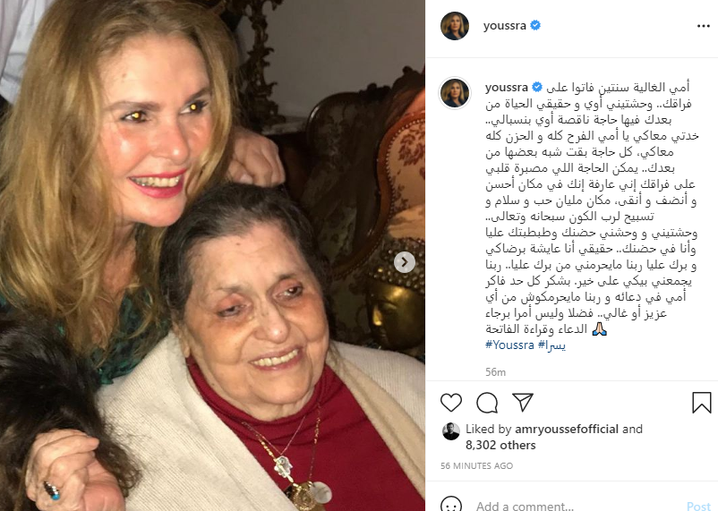 وكتب يسرا منشورًا، عبر حسابها الشخصي بموقع تبادل الصور والفيديوهات القصيرة "انستجرام"، قائلة: "أمي الغالية سنتين فاتوا على فراقك.. وحشتيني أوي وحقيقي الحياة من بعدك فيها حاجة ناقصة أوي بنسبالي".