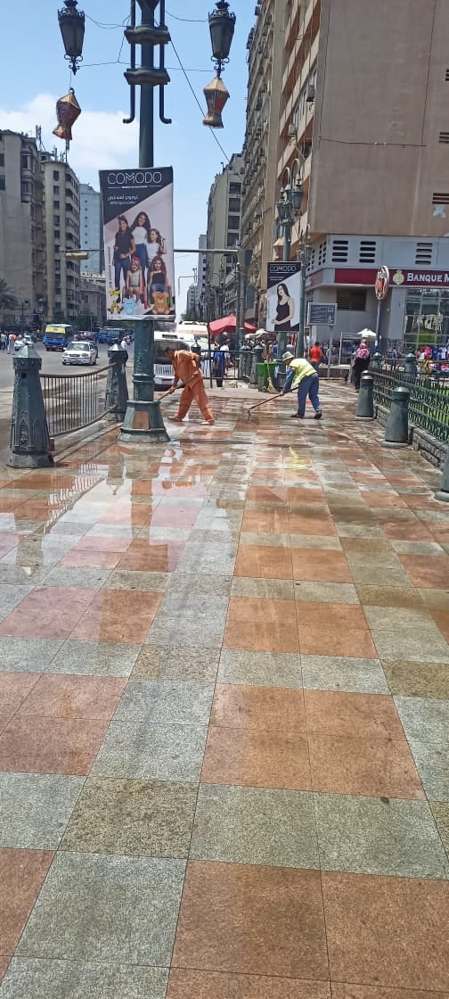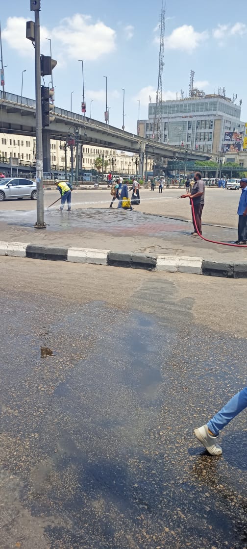 غسيل وتطهير ميدان رمسيس ضمن حملة نظافة مكبرة لشوارع القاهرة (صور)