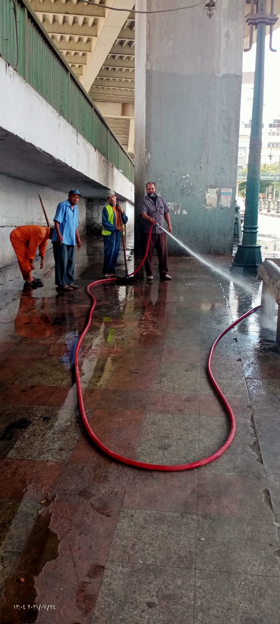 وتبرز الصور مجهود عمال هيئة النظافة ورش الشوارع والميادين بالمياه، مع تطهير الشوارع بعد غسلها.