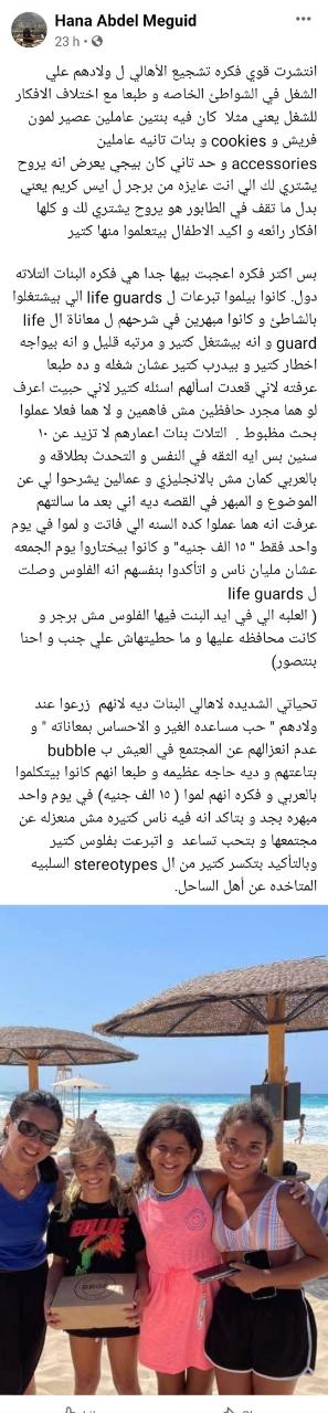 تداول مستخدمو مواقع التواصل الاجتماعي، منشورًا لسيدة تروي قِصة 3 فتيات دون سن العاشرة، يجمعن أموالًا لحراس أحد الشواطئ بالساحل الشمالي، لتحسين دخلهم، وتكريمًا لهم ولعملهم الصعب والخطير.