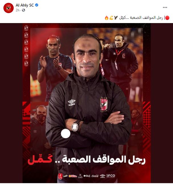 ونشرت الصحفة الرسمية للنادي الأهلي عبر “السوشيال ميديا” رسالة دعم لسيد عبد الحفيظ، جاء فيها: "رجُل المواقف الصعبة.. كمّل".