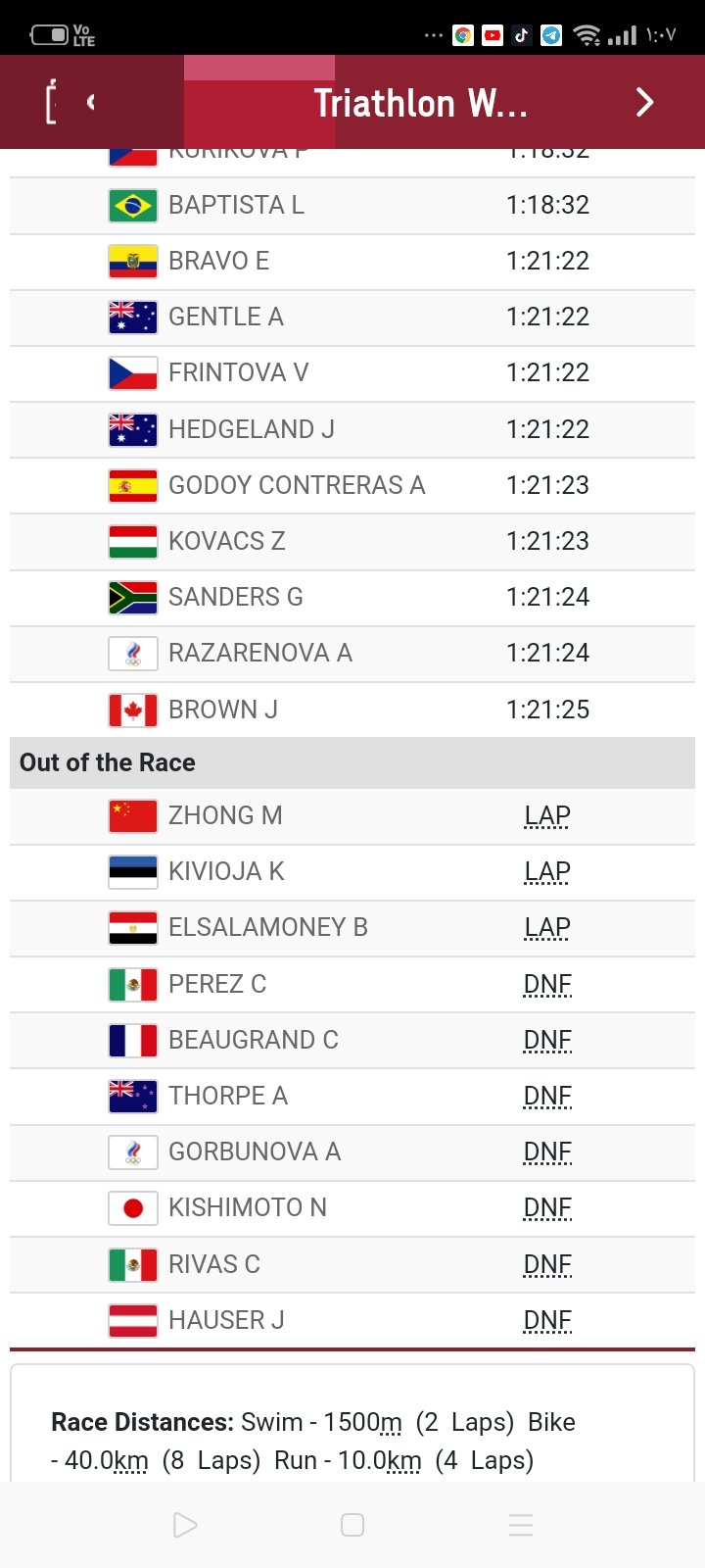 وقد استُبعدت بسملة السلاموني من السباق بعد ابتعادها عن الصدارة بشكل كبير، عقب خوضها سباقي السباحة، وسباق الدراجات الهوائية، ليتم استبعادها بعد تأخرها بفارق لفة كاملة في سباق الدرجات.