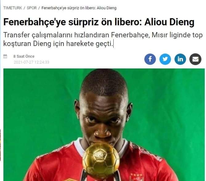وأكدت صحيفة "تايم التركية" أن فنربخشة يقتحم الصراع مع جالطة سراي لضم أليو ديانج، خلال فترة الانتقالات الصيفية الجارية.