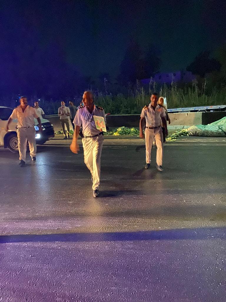 وتم رفع آثار الحادث بواسطة معدات الحملة الميكانيكية بالوحدة وتسيير حركة المرور، ولم يسفر الحادث عن وجود أي خسائر بشرية وتولت النيابة التحقيق.
