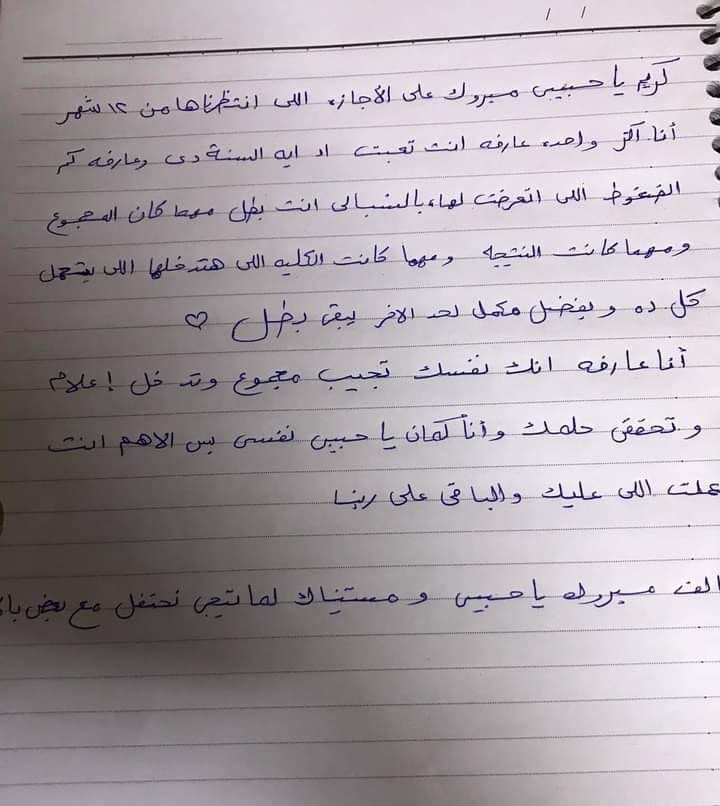 وتابعت الأم في رسالتها: “أنت الأهم بالنسبالي.. أنا عارفه إنك نفسك تجيب مجموع وتدخل إعلام وتحقق حلمك وأنا كمان يا حبيبي نفسي، بس الأهم أنت عملت اللي عليك والباقي على ربنا".