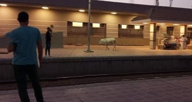 تداول عدد من مستخدمي مواقع التواصل الاجتماعي عددًا من الصور لـ"حمار تائه" على رصيف قطار المنصورة بمحطة المحلة الكبرى، ويتجول بين المسافرين.