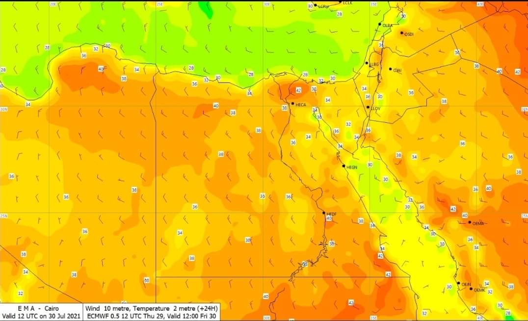 · القاهرة والوجه البحري، العظمى 75-85%، الصغرى 30-35%.