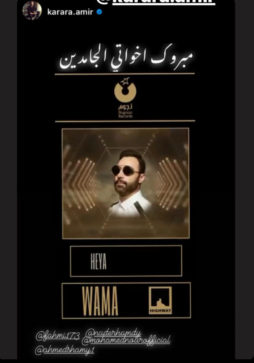 وكتب الفنان تامر حسني عبر “إنستجرام”: "ألف مبروك لأصدقاء الطفولة والفصل الدراسي بالكونسير ڤاتوار.. حبايب قلبي نجوم فريق واما وألف مبروك نجوم ريكوردز الغالين والمنتج الكبير ياسر خليل بالتوفيق والنجاح".