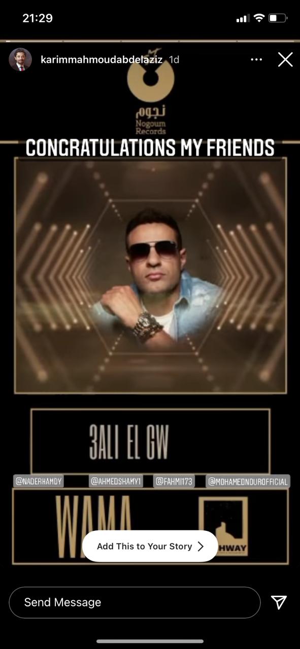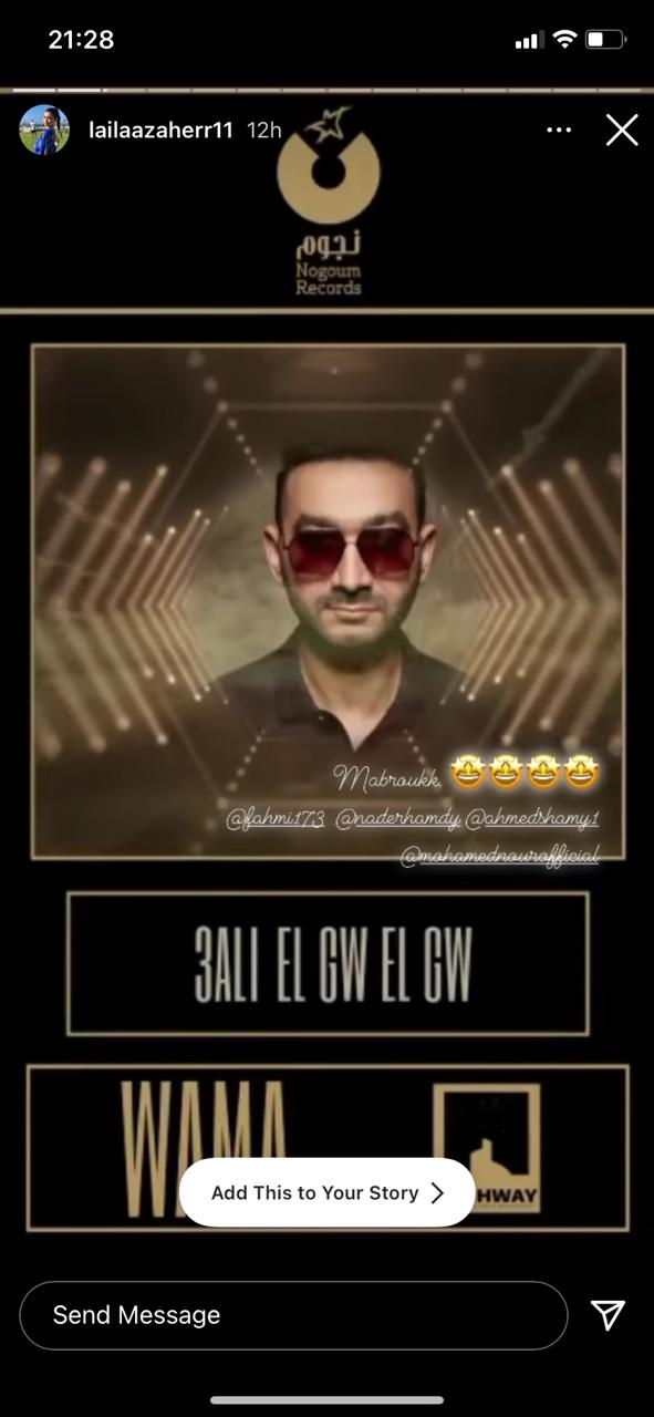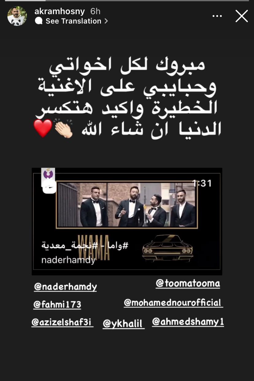 كما حرصت منى زكي وزينة وهشام ماجد وأمير كرارة وهيثم شاكر وأحمد فهمي على الإشادة بالأغنية، وتفاعلوا معها من خلال خاصية “ستوري” بموقع “إنستجرام”.