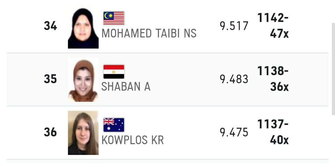 وأنهت الزهراء شعبان منذ قليل منافسات الرماية 50 متر بندقة 3 أوضاع بتحققيها المركز الرابع والثلاثين من أصل 37 مشترك لتفشل في التأهل إلي الدور القادم وحققت 1138 تصويبة.