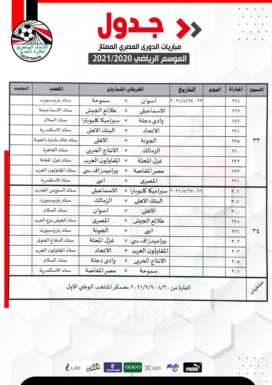 أعلنت إدارة المسابقات بالاتحاد المصري لكرة القدم، المواعيد الجديدة للجولات المتبقية من مسابقة الدوري الممتاز وبطولة كأس مصر.