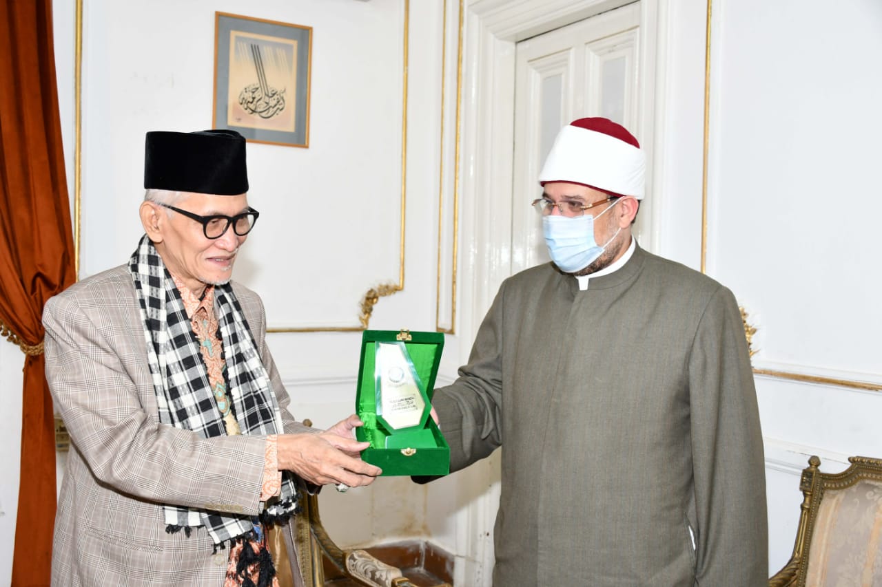 وأهدى رئيس مجلس علماء إندونيسيا إلى الدكتور محمد مختار جمعة وزير الأوقاف درع المجلس تقديرًا لجهوده العلمية والدعوية.