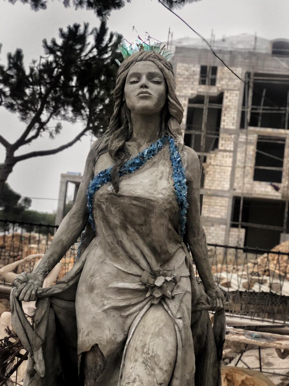 وأوضح أنه صنع التمثال بمساعدة أخيه، ليعبر عن البنت اللبنانية القوية، التي تأبى ألا أن تنتفض من تحت الردميات، على رغم الجراح التي تمزق جسدها جراء الزجاج المكسور.