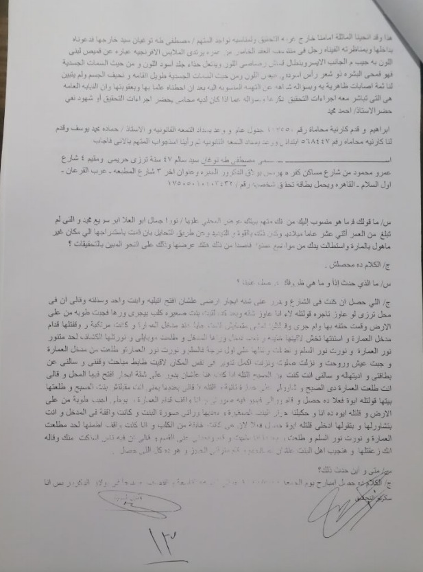 حصل “القاهرة 24” على نص التحقيقات في القضية رقم120001 لسنة 2021 والمعروفة إعلاميًّا بــ "التحرش بطفلة الطالبية".