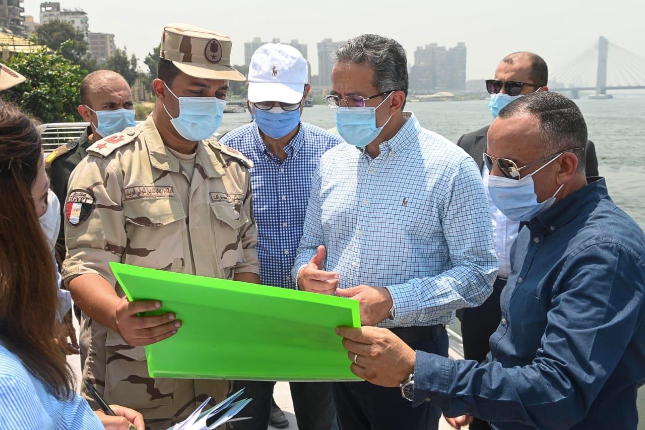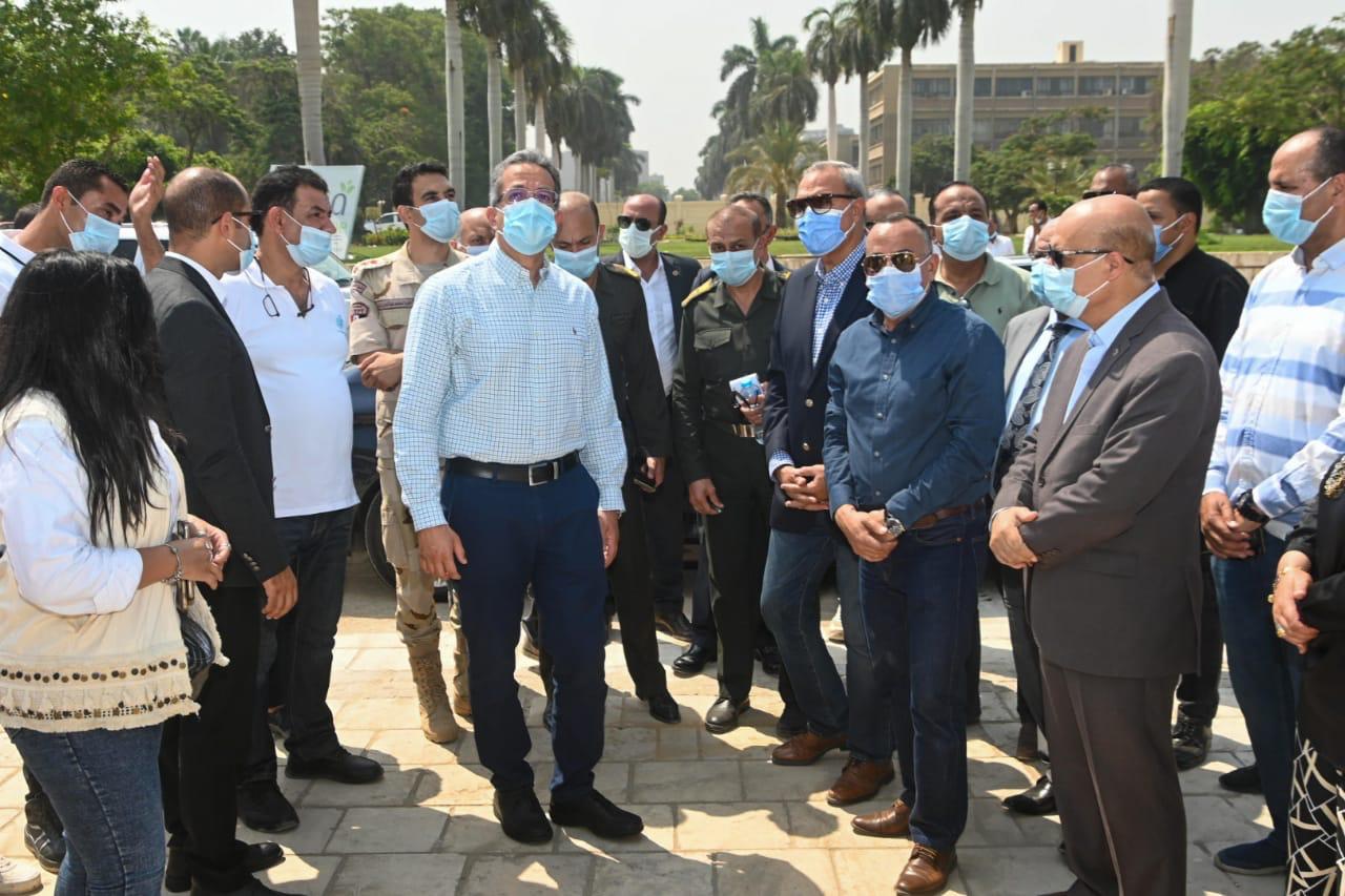 رافقه خلال الجولة اللواء عبدالحميد الهجان، محافظ القليوبية، والدكتور مصطفى وزيري الأمين العام للمجلس الأعلى للآثار، والدكتور أحمد غنيم الرئيس التنفيذي لهيئة المتحف القومي للحضارة المصرية، والعميد هشام سمير مساعد الوزير للمشروعات والمشرف على مشروع القاهرة التاريخية، والدكتور أحمد جلال عميد كلية الزراعة جامعة عين شمس، وعدد من قيادات الوزارة والمحافظة ومسئولو الهيئة الهندسية للقوات المسلحة.