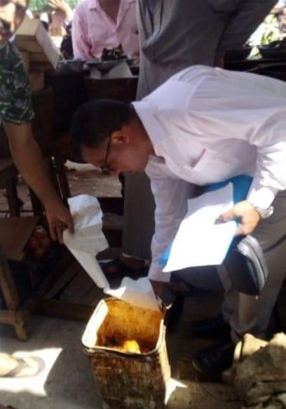 وضمت الحملة كل من: علي زعلوك، رئيس مكتب مراقبة الأغذية بالإدارة الصحية، ورجب عوض، مفتش الأغذية بالإدارة، طارق النحال، نائب رئيس الوحدة المحلية، وفرج السعداوي، رئيس شئون البيئة بالوحدة المحلية.