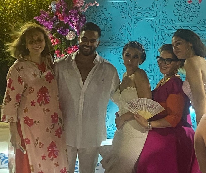 ارتدى عبد الرحمن، بدلة بيضاء، مناسبة مع الجو الصيفي الحار بالساحل الشمالي، كما ارتدت عروسته فستانا أبيض قصيرًا.