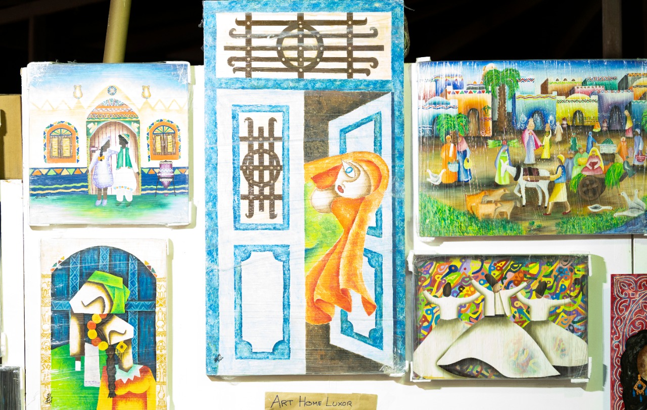 بعضها مرسوم بألوان الزيت، وبعضها محفور يدويا على الخشب، وملون بألوان الزيت، وكلها من أفكار محمود أحمد بغدادي، ابن مدينة الأقصر، خريج كلية التربية الفنية، الذى أراد أن يقدم تراث محافظته في قالب حديث، ليس فقط في شكل تابلوهات مرسومة كما كانت بدايته، بل موظّفة في منتجات عملية، مثل المقاعد والطاولات والدواليب والدكك وغيرها، لتجمع بين الجمال والوظيفة معًا.