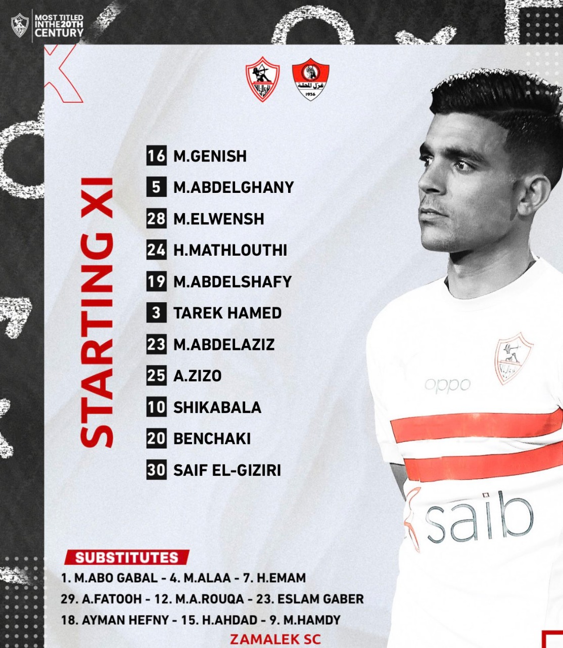 ويجلس على مقاعد البدلاء كلا من: محمد أبو جبل وأحمد فتوح وحازم إمام ومحمود علاء ومحمد أشرف روقا وإسلام جابر وأيمن حفني وحميد أحداد ومروان حمدي.