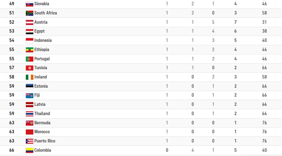 مصر تحتل المرتبة 53 في الترتيب العام لميداليات طوكيو 2020