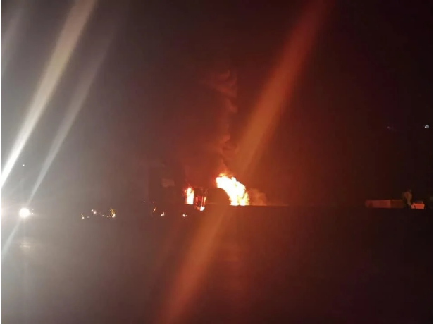 وأظهرت الصور ارتفاع ألسنة اللهب، فيما توقفت حركة المرور بسبب قوة النيران، وتطاير المواد البترولية المعبأة فى “تنك” السيارة، فيما دفعت الأجهزة الأمنية بقوات الحماية المدنية، للسيطرة على الحريق، وتم إغلاق الطريق بالكامل.