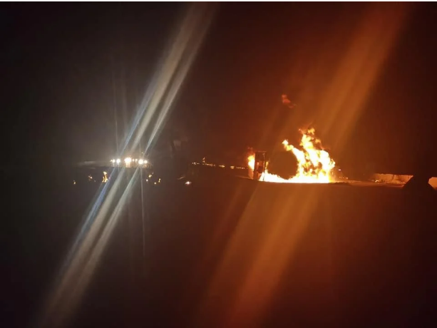 تلقت غرفة عمليات النجدة بلاغ بنشوب حريق نتيجة إشتعال النيران علي الطريق الاقليمى بعد كارتة الكيلو 10، نتيجة انقلاب سيارة محملة بالبترول دون معرفة أسباب اشتعال النيران بالسيارة.