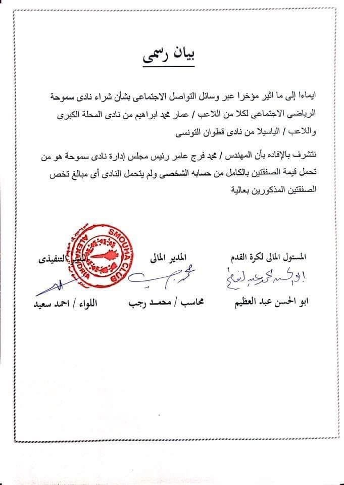 كما رفض عضو مجلس إدارة سموحة الموافقة على صرف 150 ألف دولار لشراء الياسيلا لاعب تطاوين التونسى مقابل الاستغناء عن اللاعب.