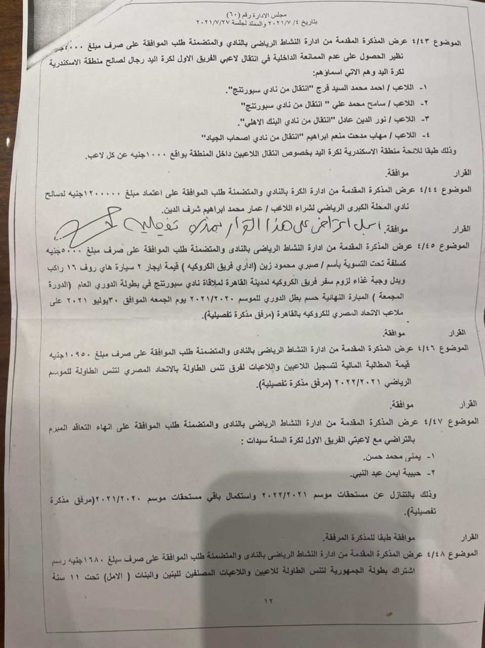 عمومية سموحة تنتقد فرج عامر بسبب بيان الصفقات (مستند)