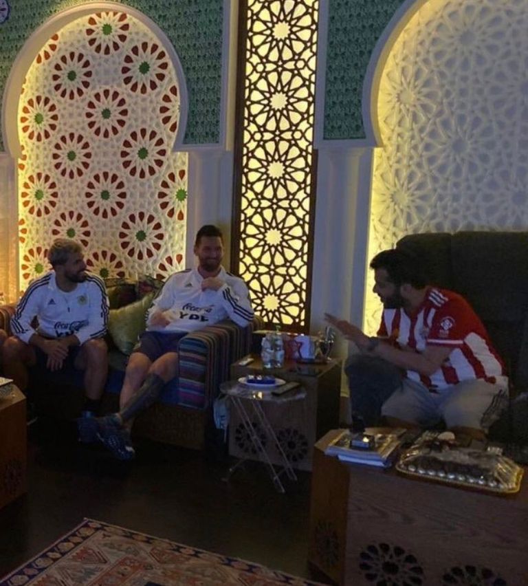 ونشر آل الشيخ وقتها، عدة صور تجمعه بنجم برشلونة السابق، رفقة زميله بالمنتخب سيرجيو أجويرو.