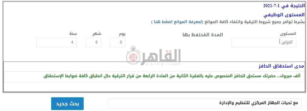 وينفرد موقع " القاهرة 24" بنشر الرابط الخاص بـ نتيجة حركة ترقيات الموظفين 2021، من خلال الرابط هنــــــــــا، قبل إعلان نتيجة حركة ترقيات الموظفين 2021 على الموقع الرسمي للجهاز المركزي للتنظيم والإدارة لعام 2021، رسميا، وبشكل حصري.
