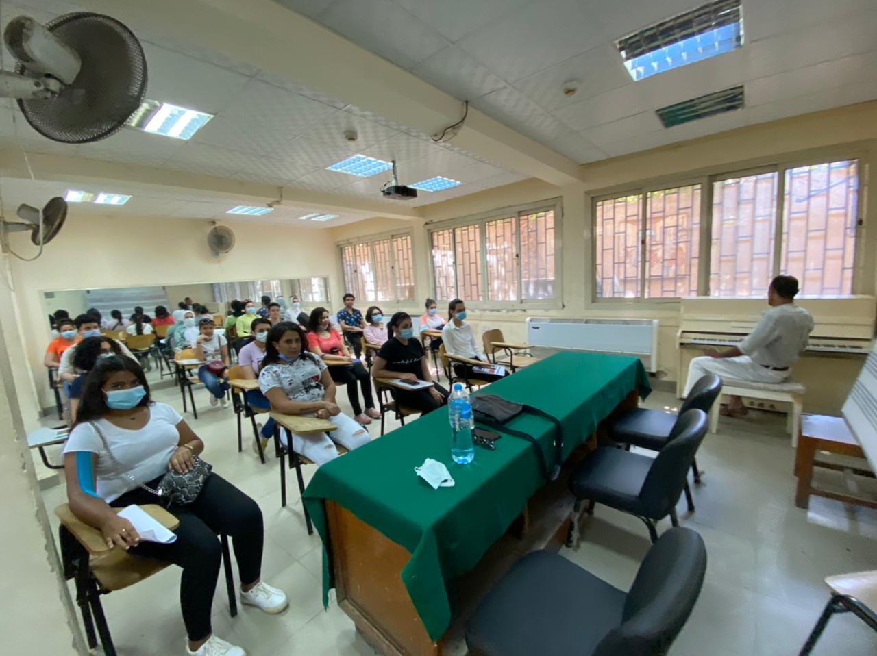 كما أشار ملاك إلى أن الكلية تلتزم بتطبيق الإجراءات الاحترازية والوقائية، وتحافظ على التباعد الاجتماعي بين الطلاب خلال أداء الاختبارات، فينتظر أولياء الأمور بالخارج، كما يرتدي الطلاب الكمامات.