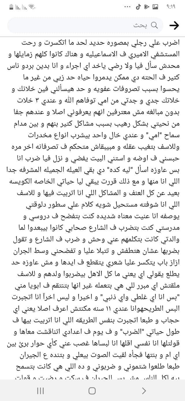 أضافت شاهدة العيان، أنه فور تلقي الاستغاثة من الفتاة توجهت لقسم ثالث بالإسماعيلية، واصطحبت قوة أمنية وتم تحديد مكان الفتاة وتم تحريرها من أمها وخالها، وتم اصطحابهم جميعًا للقسم وتحرير محضر، ومن المقرر عرضهم على نيابة ظهر اليوم.